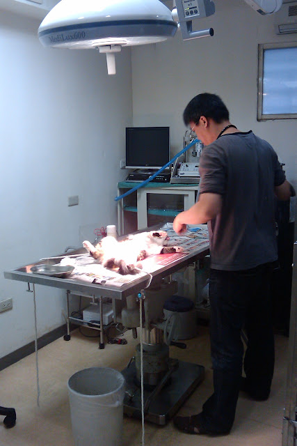 醫生在捏許小子的後腳 看看麻醉的程度怎麼樣